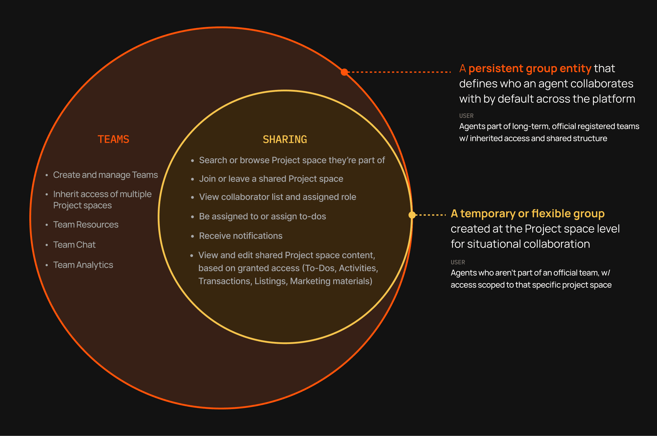 At Anywhere RE, I led 0→1 design and strategy of Team Collaboration for Agent Workplace—creating shared Project spaces, permission roles, and ownership structures that enable teams to collaborate at scale while maintaining trust and security.